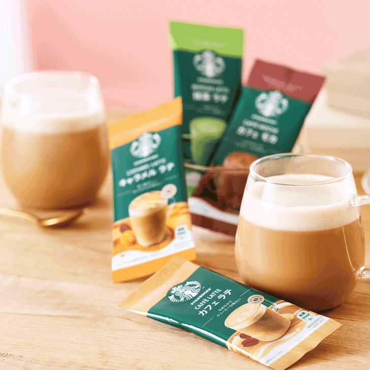カフェラテ14g、キャラメルラテ23g、抹茶ラテ24g、カフェモカ22g×各2