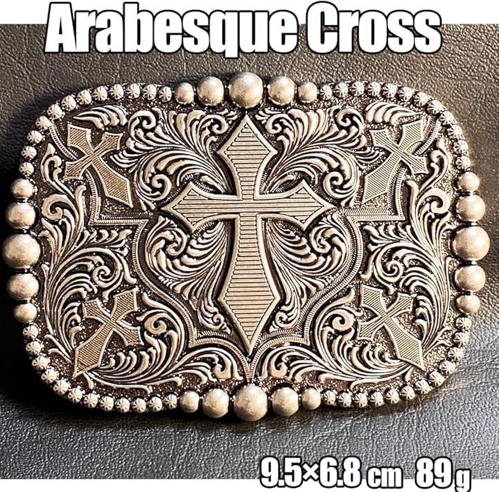 *幸せの象徴の唐草模様* 唐草模様とクロスデザインが融合した重厚感のあるスクエア型ベルトバックル。
