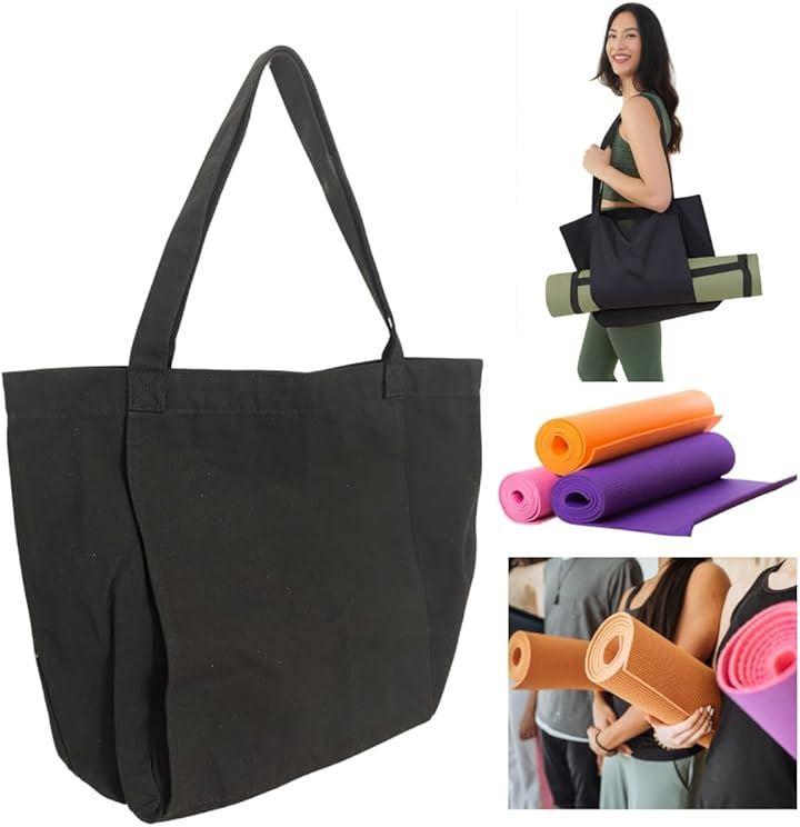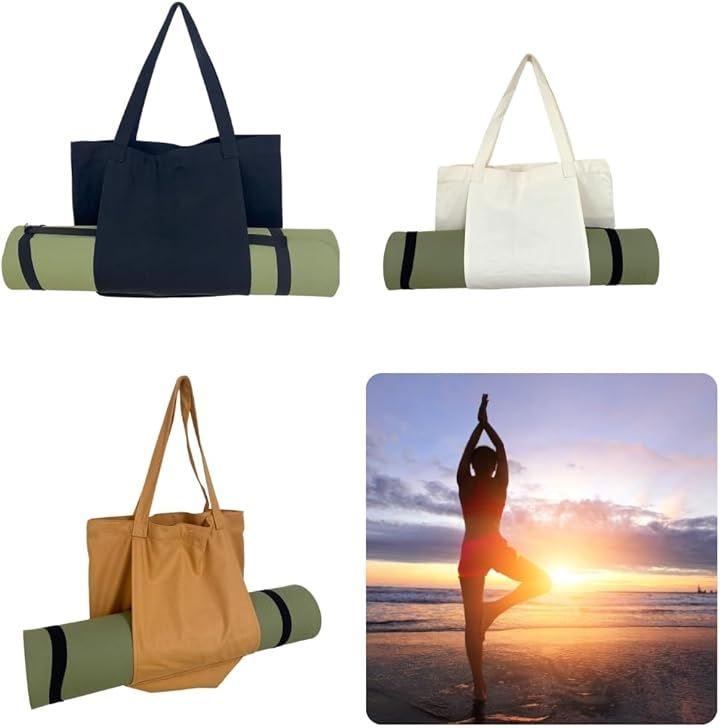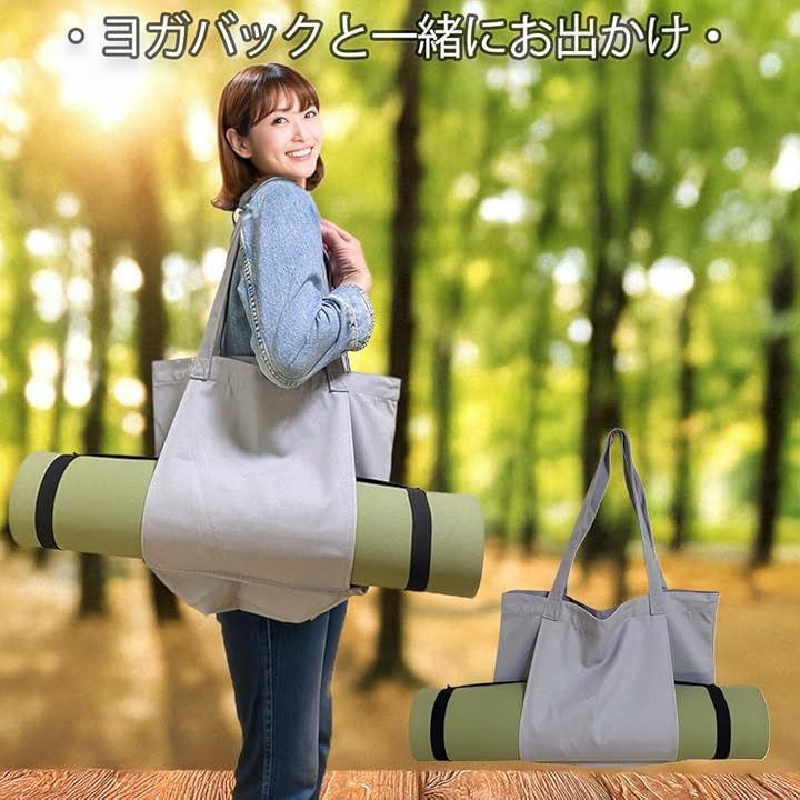 ヨガマットを便利に持ち運びができるスライドポケット付き バッグと別に持ち運ぶのが面倒臭い時にうれしい「バッグにヨガマットがつけられる。」 トート、ショルダーバッグになります。