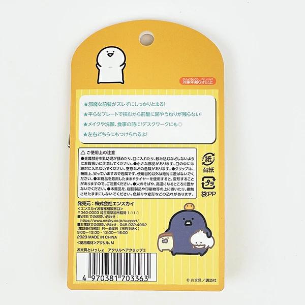 お文具さんとその仲間たちの日常を綴ったのキャラクター『お文具といっしょ』のアクリルヘアクリップです♪左右どちらにも付けられます。洗顔するときや、デスクワークにも最適☆平らなプレートで挟むから前髪に跡やうねりが残らない!