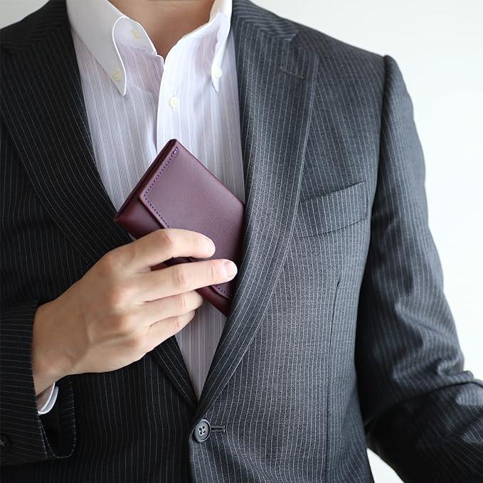 [statusy] il modo (Il Mode) Made in Japan Thin and Small Genuine Leather Long Wallet for Men and Women (Navy, Right-Handed)