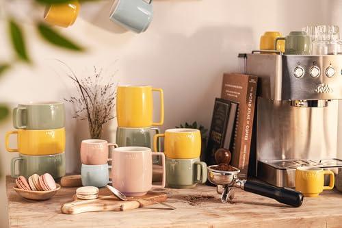 好評発売中のスタッキングマグにNewカラー、Newサイズが仲間入り! お気に入りの1色をセレクトしても、全色コンプリートしても、スタッキング(積み重ね)ができるので、 統一感のあるコレクションになります。デイリーに使うマグはいくつあっても嬉しいアイテム。これからの ホリデーシーズンに、ご友人へのセンスの効いたギフトとしてもおすすめです。 が販売、発送する商品は日本国内向け検品基準に適合した日本正規販売品です。 容量:(約)350ml 商品サイズ:(約)長さ11.0×幅9.0×高さ10.0cm / 重さ:(約)370g 材質:セラミック(耐熱陶器) 食洗機OK・電子レンジ使用可・オーブン調理使用可(300℃まで)。フリーザーでの使用可(-20℃まで)。ガス火・IH、コンロのグリルでの使用不可。 中国製 M(350ml)・・・普段使いにちょうどいい一般的なマグカップの容量 ※S、M、Lサイズは異なるサイズ同士でも積み重ねができます。XS、スープマグは同サイズ同士でのみ 積み重ねができます。