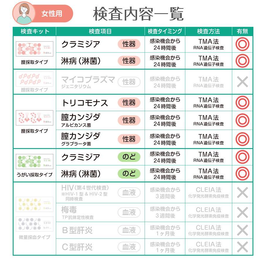 郵送検査キット 女性用:喉と性器感染の 淋菌(淋病) クラミジ、性器感染の 膣カンジダ2種(アルビカンス菌 グラブラータ菌) 膣トリコモナス を、うがい 膣分泌物 で検査。 16時までのご注文で即日発送。検査結果はご注文から最短翌々日。 匿名の性病検査キット。プライバシーに配慮した無地箱で自宅ポストにお届け。 シンプルな申込みで、スマホのショートメッセージへ結果通知。 土日祝日 年末年始 お盆休み GW も「発送 検査 結果通知」を行っております。