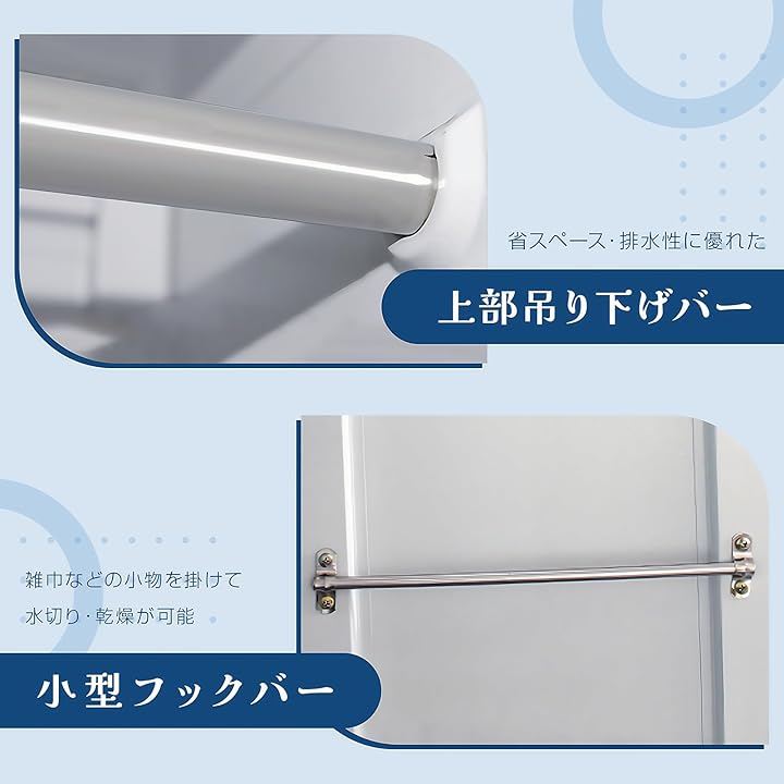 錆や腐食に強く、高い耐荷重性を備えており、様々な清掃用具の収納に最適です。