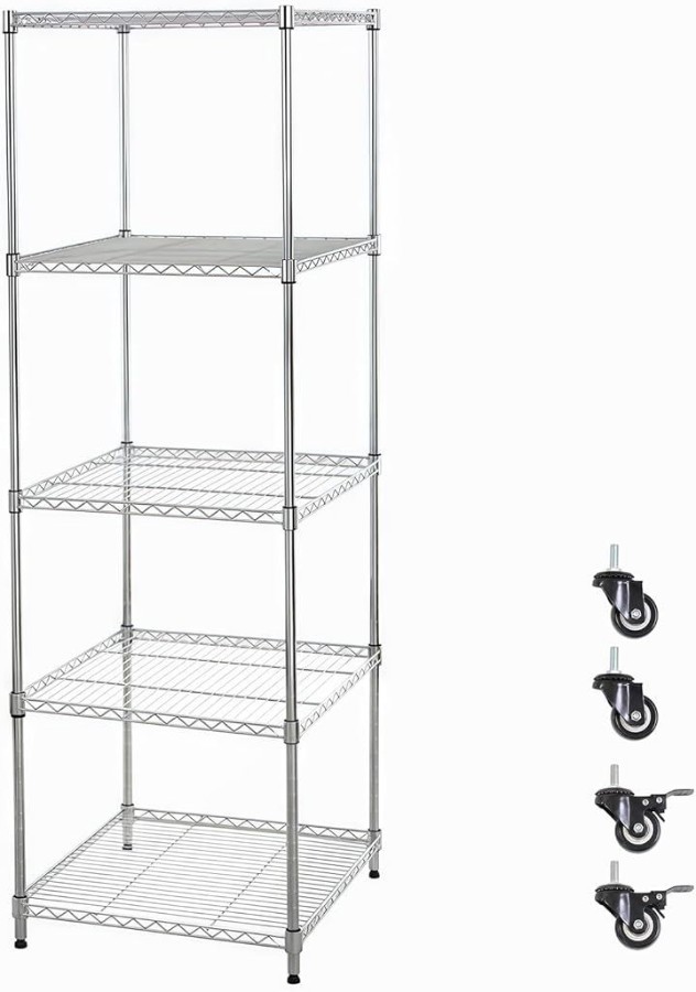 太いスチールパイプと強化されたメッシュ棚により、1段あたり約50kgの重さまでしっかりと支える耐久性を実現しています。