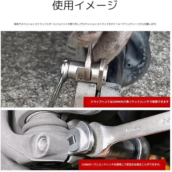 「使用方法」この商品を使用する際は、別途16mmおよび17mmのスパナとソケットレンチが必要になります。