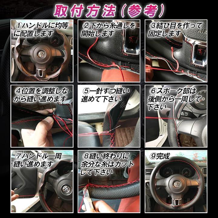 「セット内容」「ステアリング、ハンドルカバーx1(パンチング)」「編み込み用糸x2」「編み込み用針x2」説明書は付属いたしません。