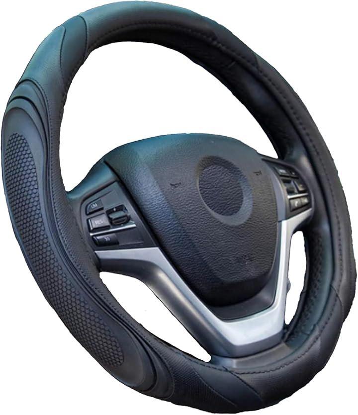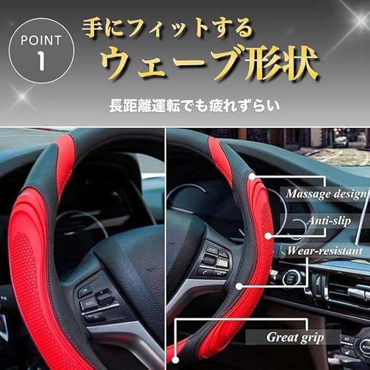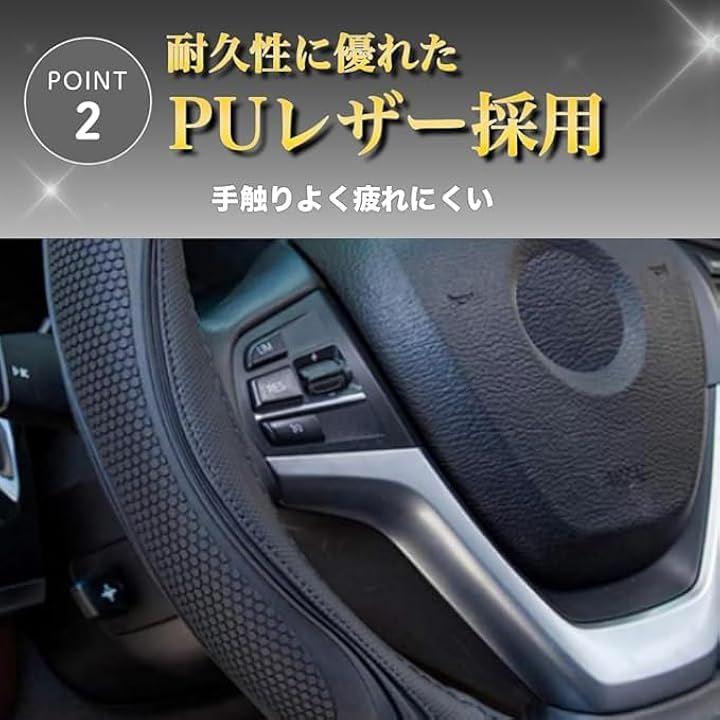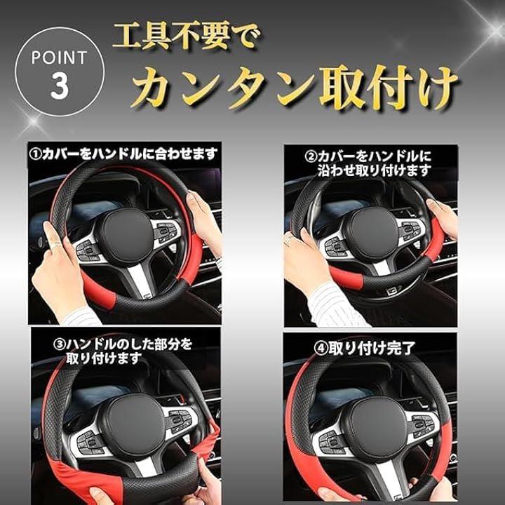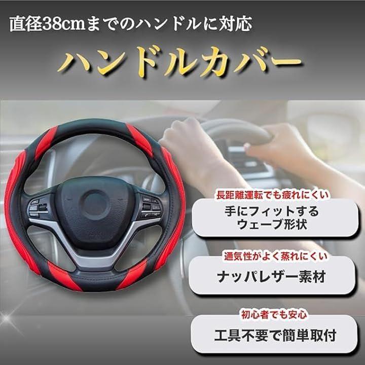 「PUレザーカバーでハンドルをスタイリッシュに」軽自動車や乗用車など直径38cmまでのハンドルで装着することができるハンドルカバー。