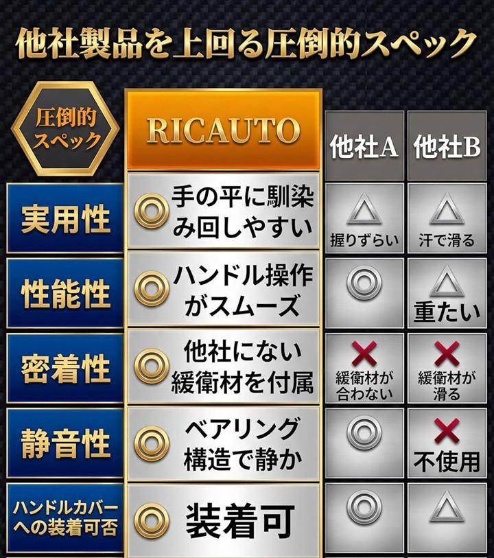 また、ハンドルとの密着性を良くして欲しいとの声を頂き、RICAUTOオリジナルゴムで設計し、より多くの方にRICAUTO ハンドルスピンナー をご体感頂けるようにしました。