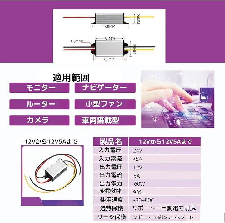 24Vから12Vへの変換をサポートし車両の電子機器に安定した電源を供給します。
