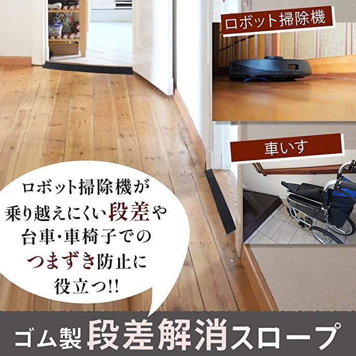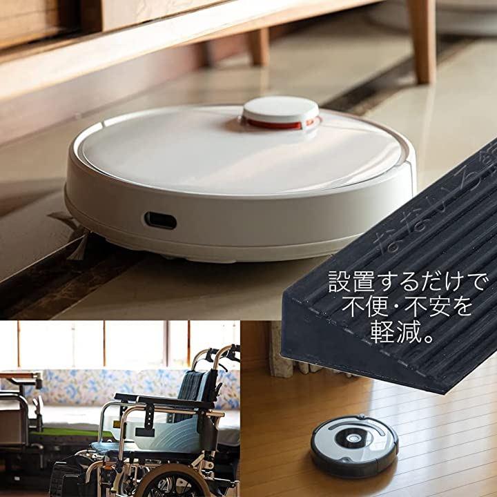 ロボット掃除機が乗り越えにくい段差や、台車・車いすでのつまずき防止に役立つゴム製段差解消スロープです。