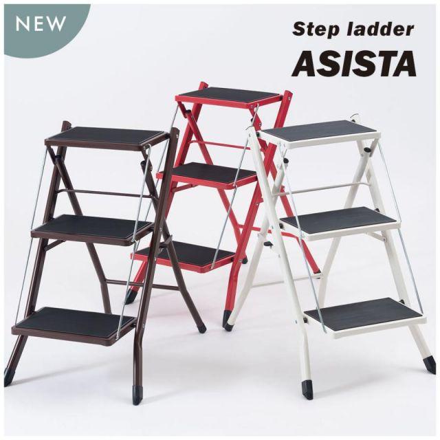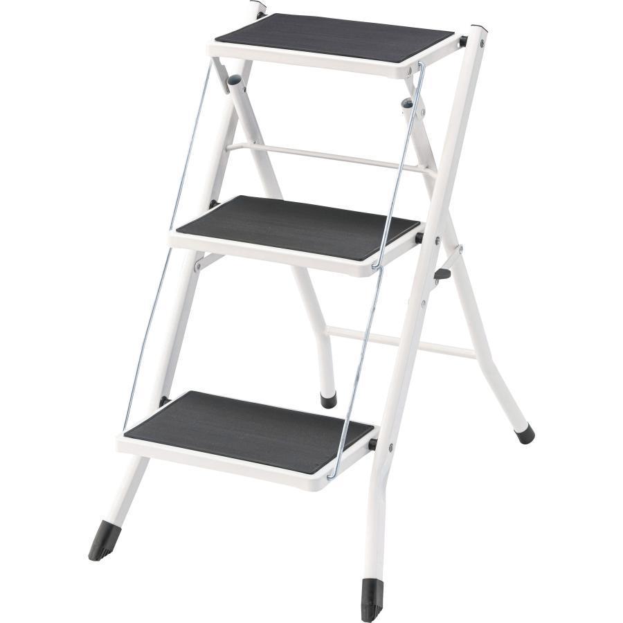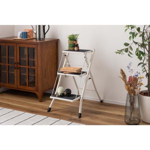 ●シーンに応じた多彩な使い方ができるステップ台。●耐荷重量100kgの為、安定感抜群の踏み台として使用。●雑貨や小物を乗せて、簡易的なディスプレイ台としても使えます。●高い耐久力があるので、ちょっと座りたい時のスツールにも。●折りたたむととってもスリムになるので、不要な時はちょっとした隙間にササっと収納。●サビやキズに強い丈夫なスチール製。●スチール製でもフレームが細い為、重量5kgと比較的軽量な作りに。持ち運びや移動も楽々。