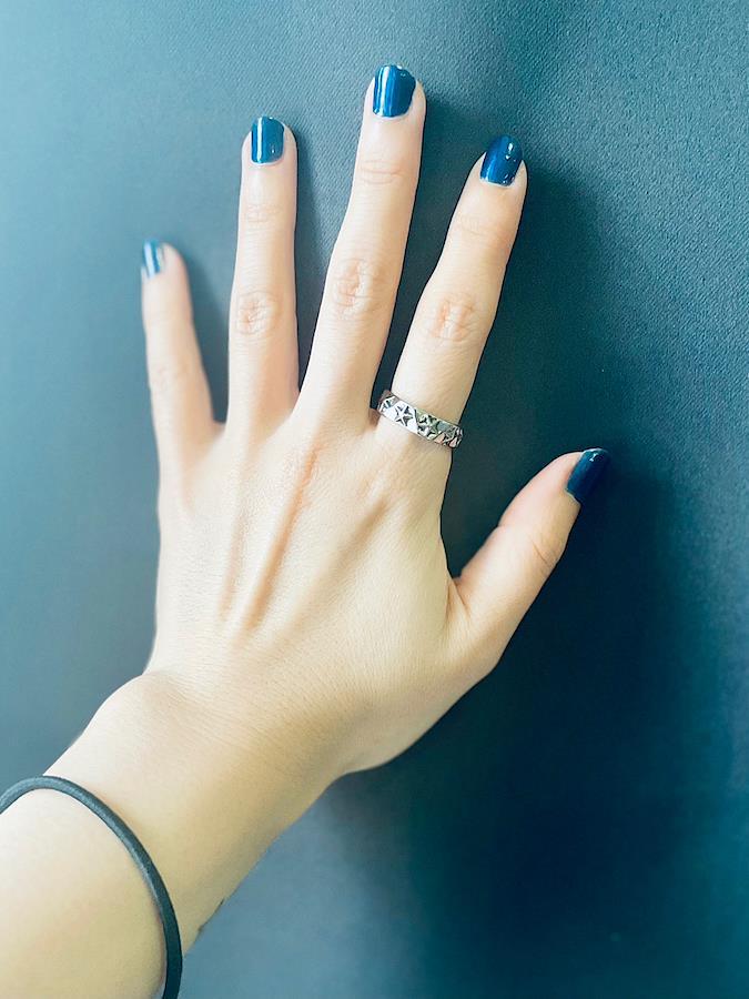 立体的な星がデザインされたリング。ジャンルを問わずいろいろなファッションのアクセントにおすすめ☆サイズ調整が可能なので男女問わず好きな指に合わせてつけれます。