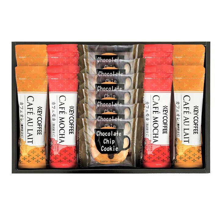 チョコチップクッキー×6、キーコーヒーカフェオレスティック7g、キーコーヒーカフェモカスティック7.8g×各4【卵、乳、小麦】