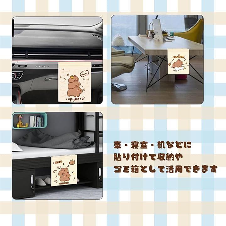かわいい動物デザインが魅力の貼り付け式収納袋です。