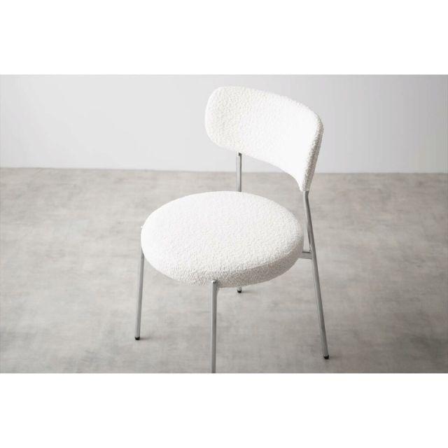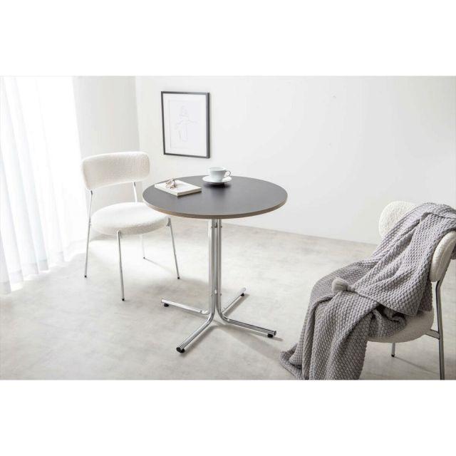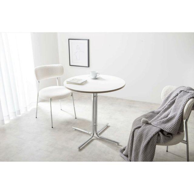 洗練されたデザインの『Stjerne(スチャーナ)』ダイニング3点セット。独創的な脚のシルエットが美しい丸型カフェテーブルと、ブークレ生地がアクセントのチェア2脚は、置くだけでお部屋をホテルライクな空間に演出。実用性が高い天板サイズや座り心地の良さにもこだわりました。特別感のある空間でゆったり心地よい毎日をお楽しみください。〈製品規格〉【商品サイズ】W70cm×D70cm×H72.5cm【商品重量】約23kg【耐荷重】テーブル:約8.5kg、チェア:約4.6kg【素材・成分】【テーブル】MDF(メラミン貼り)、スチール(メッキ加工)【チェア】合板、ウレタンフォーム、ポリエステル、クローム(メッキ塗装)【組立】要組立品※組み立て時間:2人以上で約60分※付属工具のほか、プラスドライバーをご用意ください。【生産地】中国