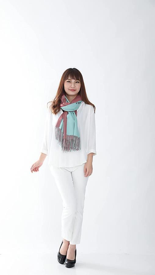 ・「使いやすい無地のデザイン」柄がない無地のストールなので、カジュアルにもオフィスファッションにも合わせやすいデザインです。