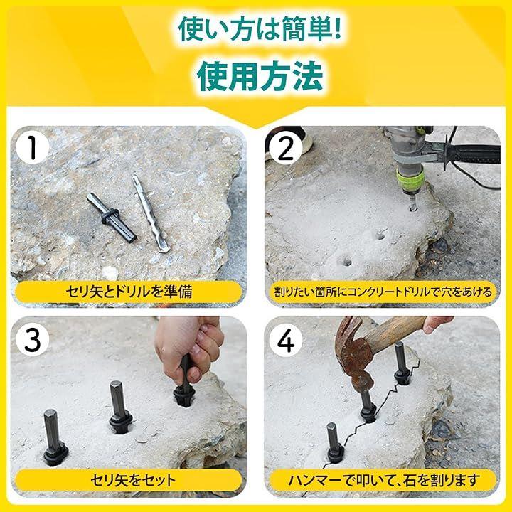 石材、コンクリート、モルタルなどを砕く際に使う、セリ矢、ストーンスプリッター5個セットです。