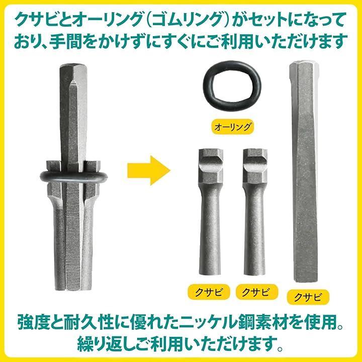 クサビとオーリング(ゴムリング)がセットになっており、手間をかけずにすぐにご利用いただけます。