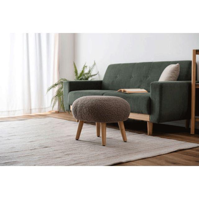 ブークレ生地を使ったころんと丸いフォルムがかわいいスツール