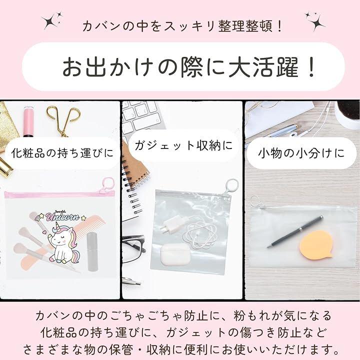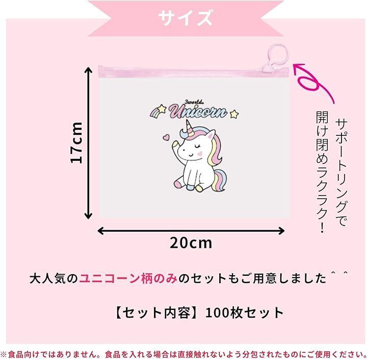 「枚数」開閉サポートリング付きファスナー袋 大容量 100枚 「サイズ」ユニコーン柄:約20x17cm