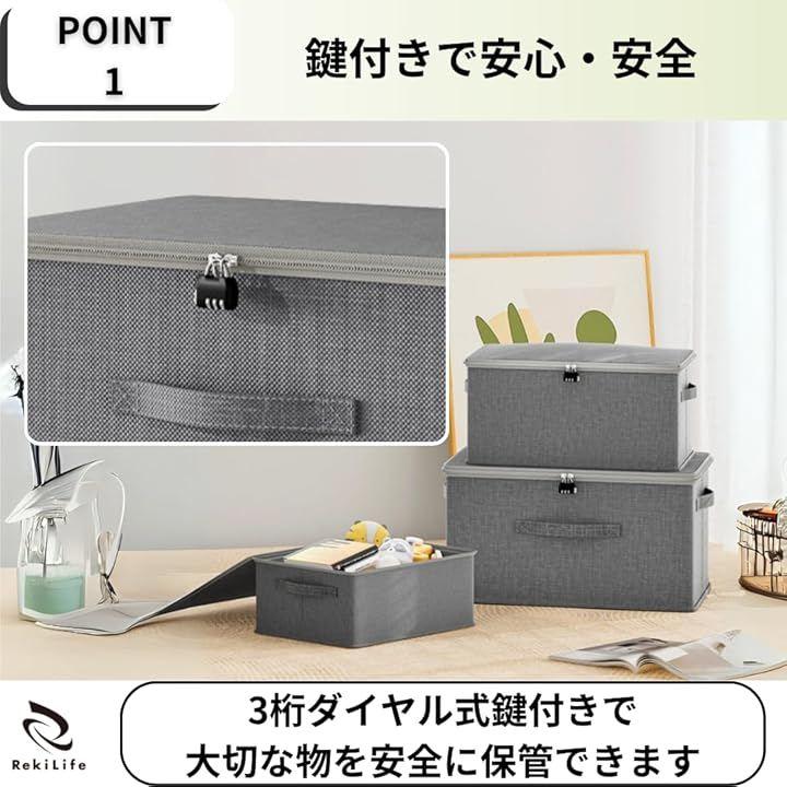 「鍵付きで安心・安全」この収納ボックスには、貴重品や大切なアイテムを保管できる3桁のダイヤル式鍵が付いています。