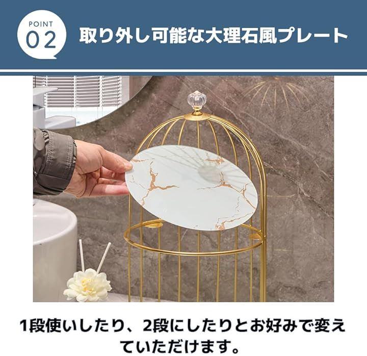 「鳥かご風がおしゃれなラック」大理石風プレートと鳥かご風がおしゃれなアンティーク調のラック。