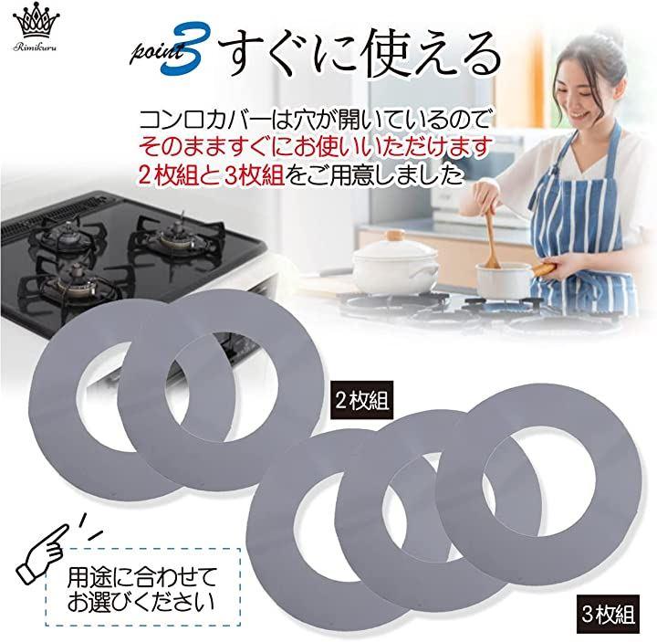 ・油汚れや焦げ付きを防ぐコンロカバー お得な2枚セット:五徳の下に敷くだけでガスコンロの油汚れなどを防止するコンロカバーです。