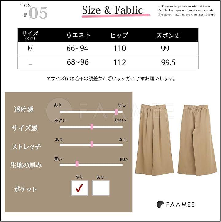「参考サイズ」 「M」ウエスト66-94 ヒップ110 ズボン丈99 「L」ウエスト68-96 ヒップ112 ズボン丈99.5 *サイズには若干の誤差がございますがご了承お願いします。