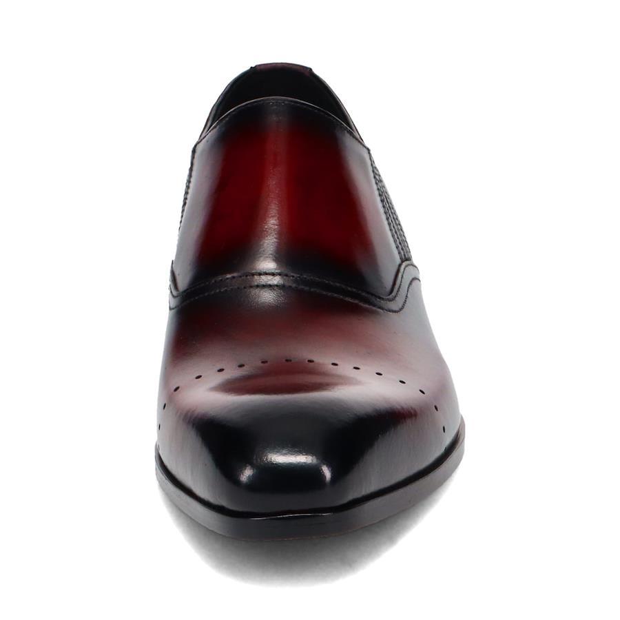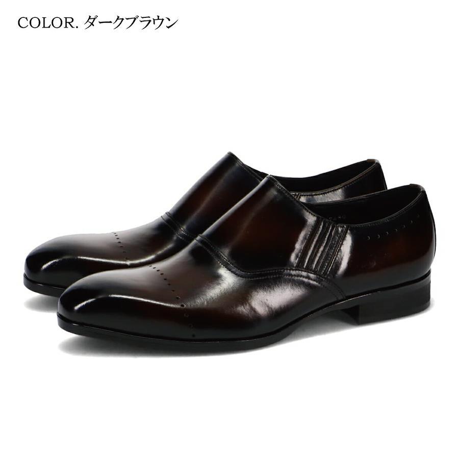 | グラデーションが美しい国産ドレススリッポン 【素材】 二層に色付けされたカウレザーを、熟練の職人技で上の色層だけ手作業で落としていき、深みのある革に仕上げました。 ※本革を使用している為、多少のムラや小傷などがございます。また手作業による仕上げの為個体差がございます。予めご了承ください。 【デザイン】 甲からつま先にかけてエッジの効いたエレガントなフォルムが、洗練された足元を演出するドレッシーな一足。 最小限の意匠として施されたメダリオンが、ちょうどよいアクセントになっています。 アンティーク家具のような深みのあるグラデーション仕上げは、数少ない国内職人による希少な技術によって仕上げられ、同じものが二つとないオンリーワンな仕上りです。 サイドエラスティック仕様で脱ぎ履きしやすく、底材を軽量化し使いやすくしたのも魅力の一つです。 フォーマルな場面や、普段のビジネスシューズとしてもおススメの一足です。 【サイズ】 革靴で25.5cm、スニーカーで26.5-27cmを着用するスタッフで<25.5cm>でジャストサイズでした。 ※サイズ感は、個人差がございますのであくまで参考程度にお考え下さい。 ■ブランド...whoop-de-doo costume no age ■カラー...BLACK,DARK BROWN,WINE ■アッパー素材....牛革 ■底材.....合成ラバー ■ヒール...約3cm ■重さ(片足)...約363g ■日本製 *上記は全て25.5cmで計測した数値です。 *多少の誤差が生じる場合がございますので予めご了承下さい。 whoop de doo co.,ltd whoop'-de-doo' フープディドゥ |