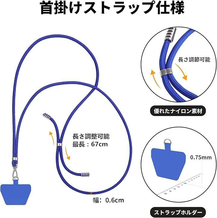 「優れたナイロン製スマホストラップ」最長約67cm、幅約0.6cmです。