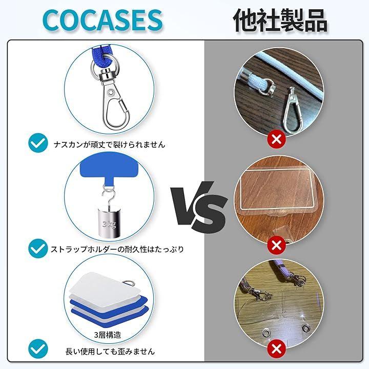 「多用途&広い適用性」COCASESのスマホストラップはスマホだけでなく、鍵、USBメモリ、社員証ケース、カードケースなどにもピッタリです。