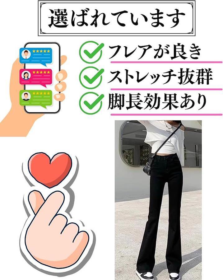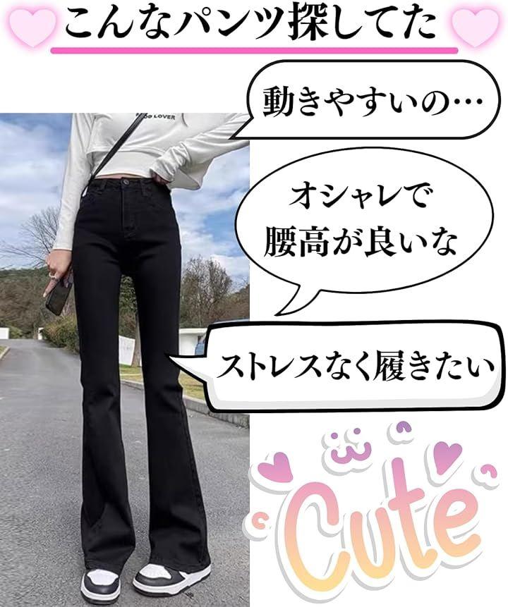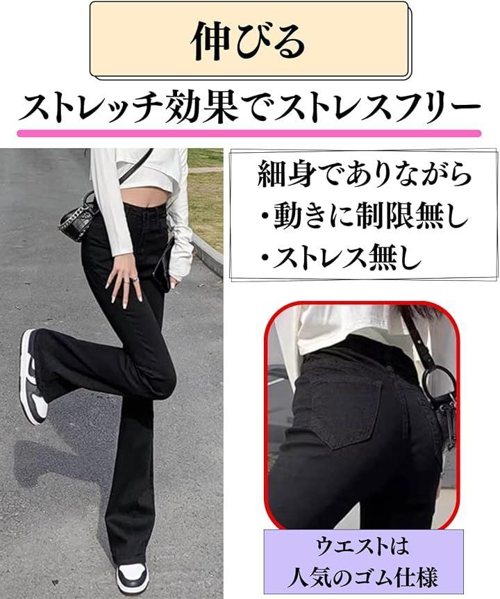 洗練された黒ズボンは、じーんすレディースやフレアデニム、ハイウエストデニムを探している方にも最適。
