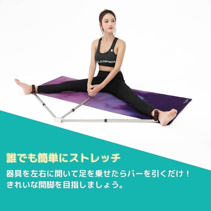 「手軽に開脚ストレッチ」レッグパッドに足を固定してハンドルを引くだけ。