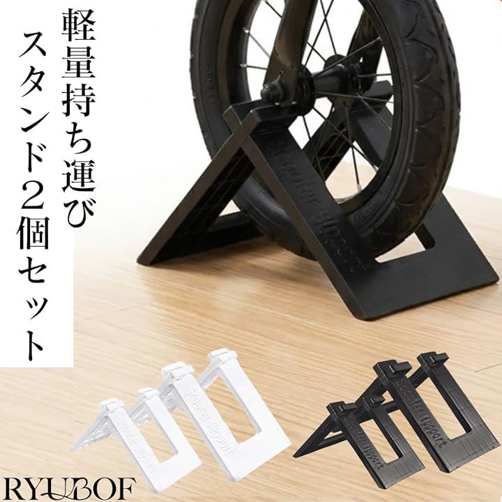「軽くて持ち運びしやすい設計」 2個セットのスタンドはコンパクトに折りたためて軽量だから、お出かけ先でも持ち運んで使える使い勝手の良さが魅力で、公園や旅行時の自転車置きにも最適です。