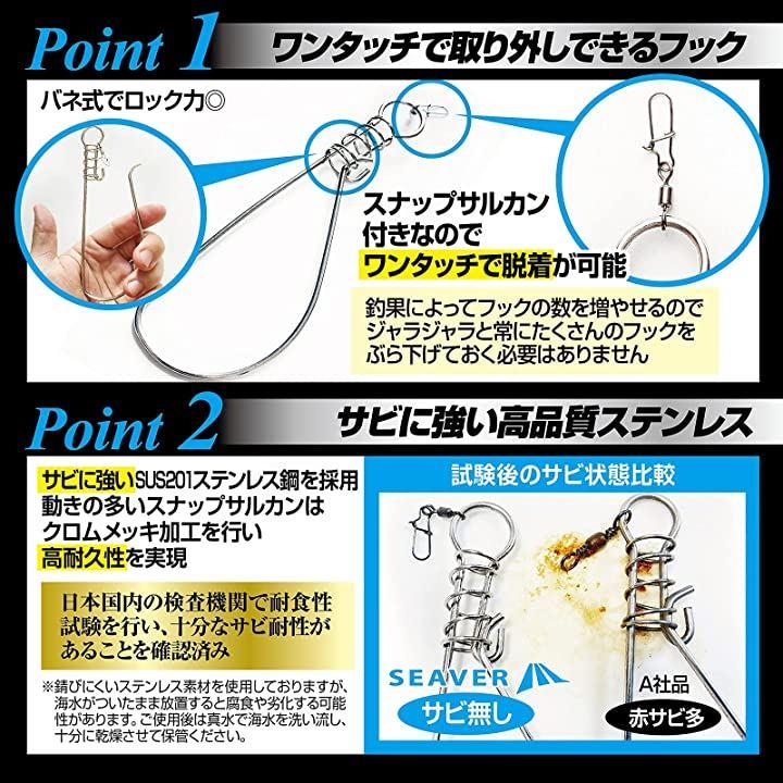 釣果にあわせて、フックの数を増減させることができるので、常にジャラジャラとフックをぶら下げておく必要がありません。