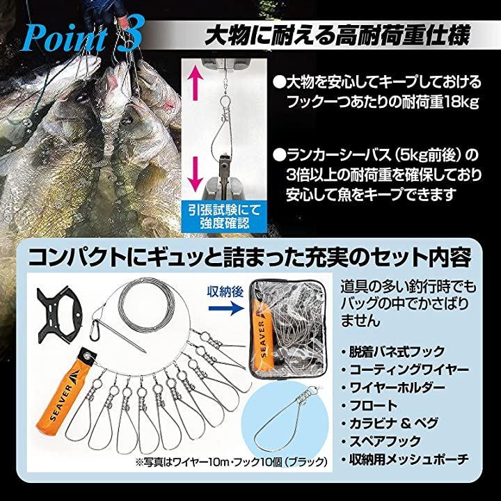 「高耐荷重仕様 」フック一つあたりランカーシーバス約5kgの3倍以上の耐荷重18kgを確保しており、安心して釣り上げた魚をキープいただけます。