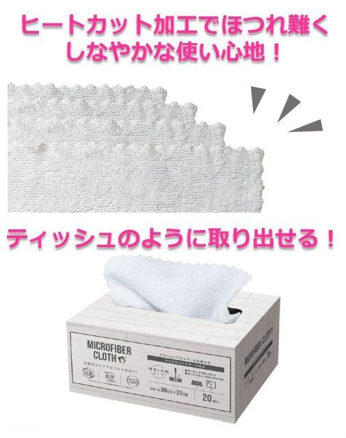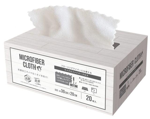 ●抗菌・防臭効果をプラスしたマイクロファイバークロス。●ナイロン・ポリエステルでしつこい汚れをしっかりかき落とし、吸水性が高いマイクロファイバークロスです。●フローリングワイパーシートサイズ、波型のフチなし加工によりしなやかでフローリングワイパーに取付しやすく、拭き掃除に便利なマイクロファイバークロスです。●BOXタイプで収納しやすく、ティッシュのように取り出す事ができる為、手軽にお使い頂けます。●パッケージの印刷に環境にやさしい植物性インクを使用しています。ご使用上の注意●本来の用途以外には使用しないでください。●火のそばには置かないでください。●非常に細かい繊維のため、手肌が荒れていると繊維が引っ掛かることがあります。肌の弱い方や長時間使用する場合は炊事用手袋をご使用ください。●ご使用後は汚れたらよく洗い、十分に乾燥させてください。●色落ちする場合があります。他の物と分けて洗濯してください。●水洗いにより多少縮みます。製品の特性上サイズと重さなどに多少の誤差があります。●乾燥機やアイロンのご使用はお避けください。●うるし、金銀箔、塗装面などの軟らかい面への使用はキズをつける場合があります。あらかじめ目立たない場所で試してからお使いください。●固いゴミや砂などが付着したまま使用しないでください。キズをつけるおそれがあります。●塩素系洗剤、漂白剤、柔軟剤は使用しないでください。また、煮沸消毒もしないでください。変色、変質のおそれがあります。