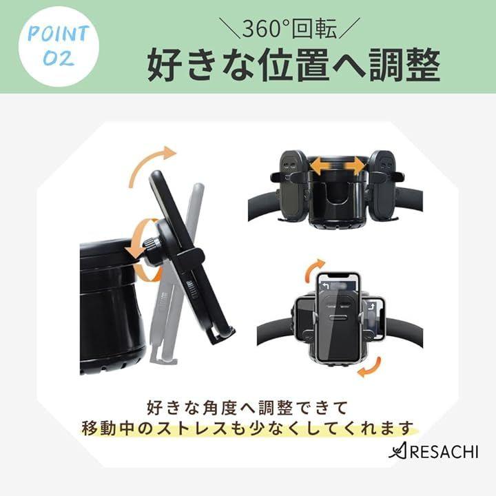 「360度回転する便利なホルダー」ホルダーは360度回転でき、好きな角度に調整できます。