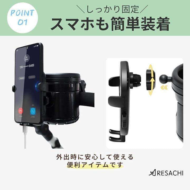 「たくさんのアイテムを収納可能」哺乳瓶やペットボトル、スマホなど、さまざまなアイテムをしっかり収納できるドリンクホルダーです。