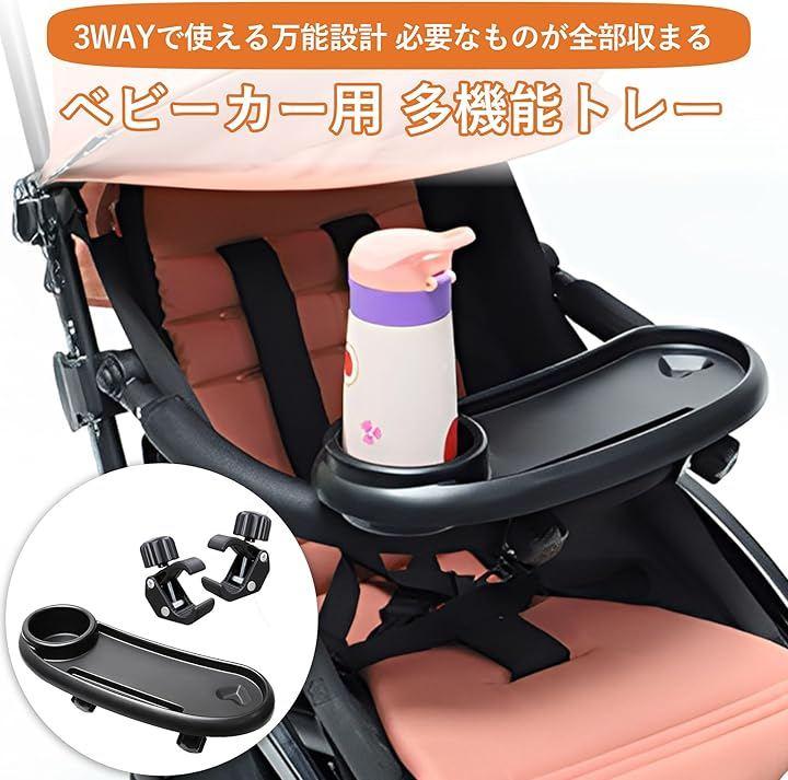 「多機能で便利」ボトルホルダー・トレー・スマホスタンドが一体になった3WAY仕様で、ベビーカーのお出かけ時間がぐっと快適になります。