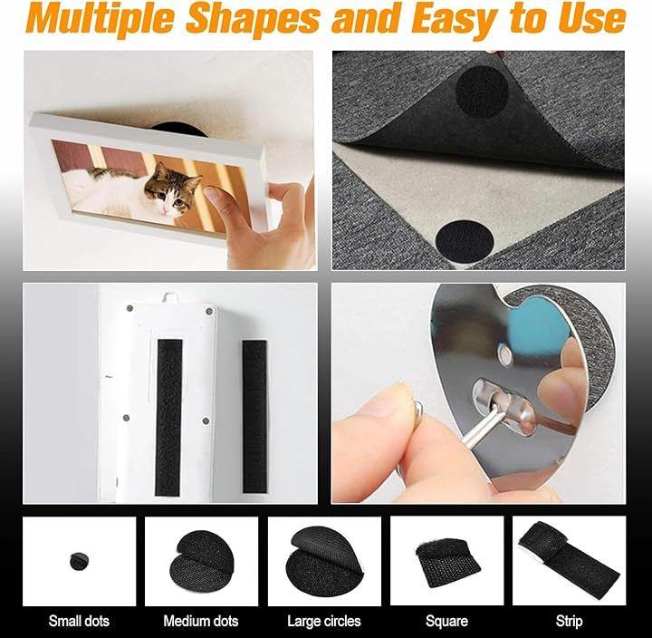 この多用途コレクションには、丸いドットと正方形のストリップの両方が含まれており、信頼性の高い取り付けソリューションのための強力な粘着剤の裏地が特徴です。