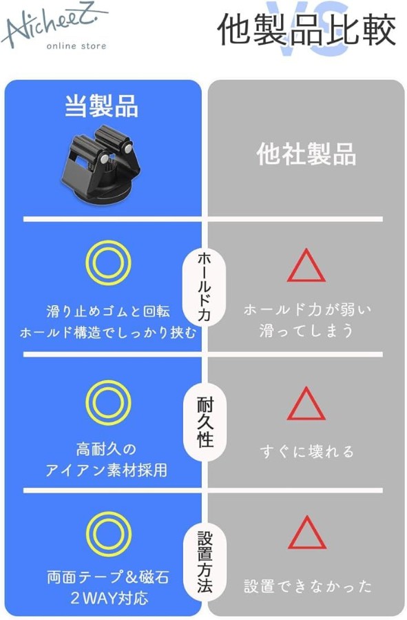 「多用途で活躍するシンプル設計」両面テープでも設置ができるため、磁石が使えない場所にも対応。