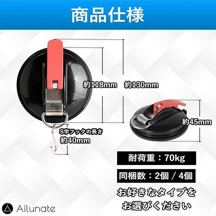 「直径11.8cmの大型吸盤で耐荷重70kg」吸盤の直径は11.8cmで、耐荷重は70kgです。