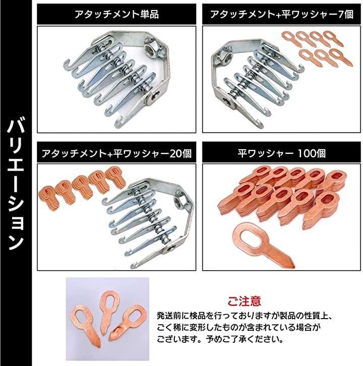 ・スライドハンマーに取り付けて使用する7本爪のアタッチメント単品だけでなく、平ワッシャー100個、両方のセットなど、 バリエーションを複数ご用意しているのでお好きなものをお選びください。