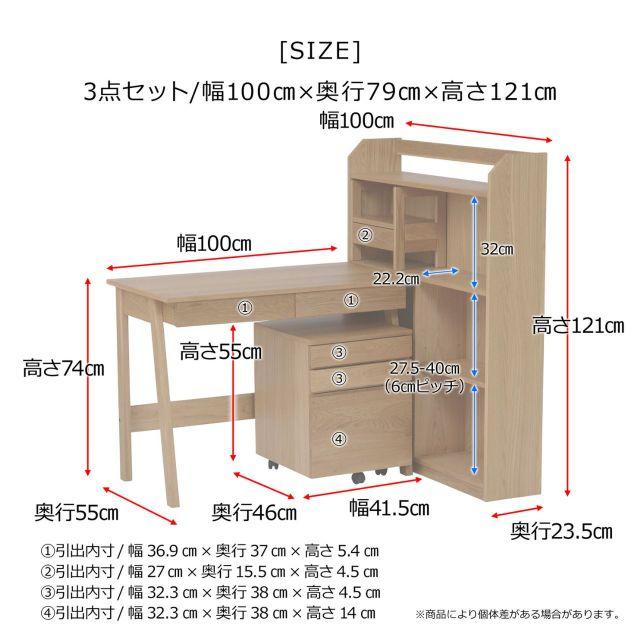 〈製品規格〉■サイズ(約):3点セット:幅1000×奥行790×高さ1210(mm)100デスク:幅1000×奥行550×高さ740(mm)100シェルフ:幅1000×奥行235×高さ1210(mm)ワゴン:幅415×奥行460×高さ550(mm)