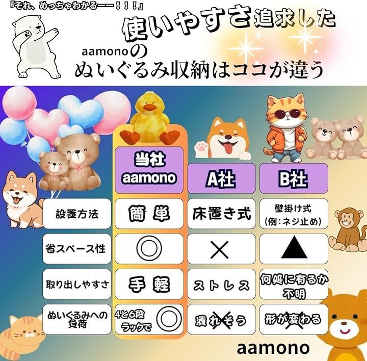 「aamonoのぬいぐるみ収納」は、まるでぬいぐるみたちのための専用クローゼット。 お気に入りの子たちをかわいく飾れば、お部屋がたちまち夢のような空間に早変わり。 毎日が、大好きなぬいぐるみたちに囲まれた、幸せな時間になること間違いなし。