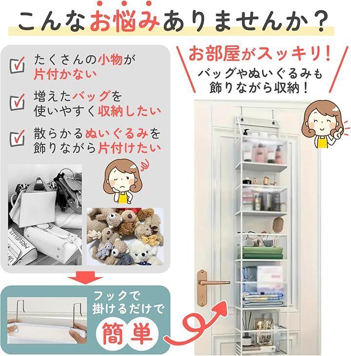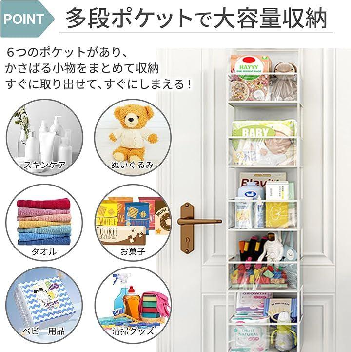ドア裏や壁面を活用し、ぬいぐるみタワーを作れる6段ウォールポケット。