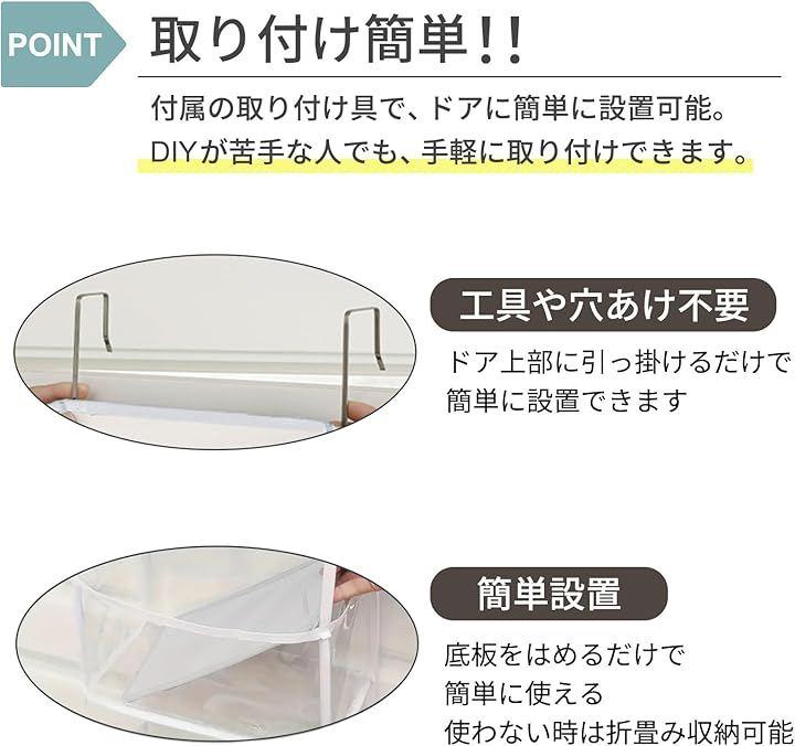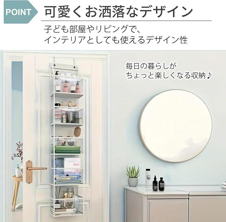 「壁掛けで省スペース」ドア裏や壁に掛けるだけ、床を塞がず部屋が広々。