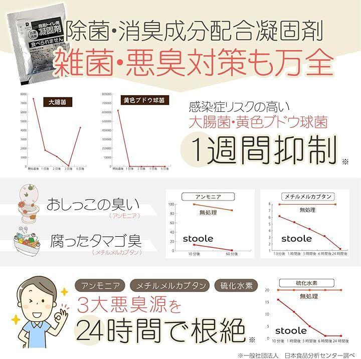 「セット内容」個包装100枚(凝固剤と排便袋のセット)、処理袋20枚、ガイドブック1冊